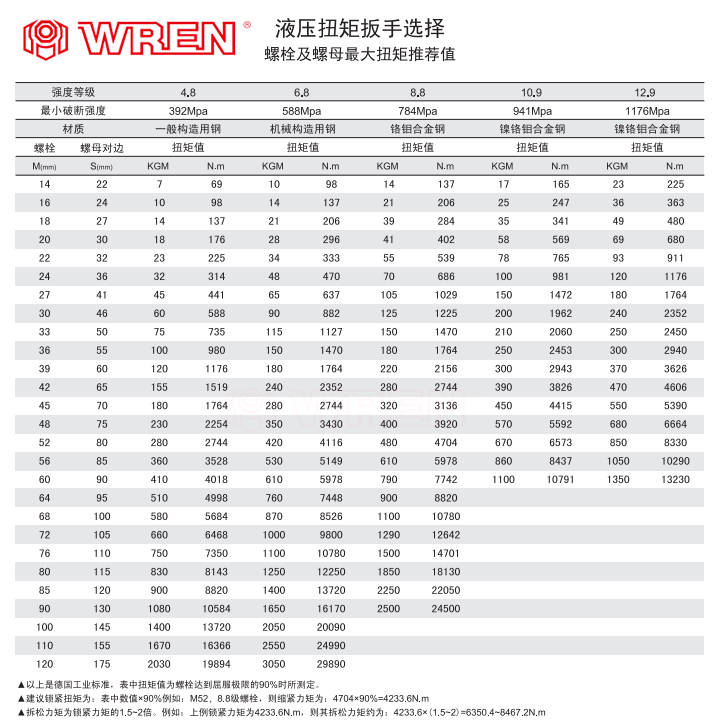螺栓一般有幾種規(guī)格,例如M36、M42、M48,如果不說螺母多大,是按公制螺栓螺母副配套筒的對邊,M36在的螺母六角對邊是55,M42是65,M48是75。如螺栓規(guī)格跨度太大,而且扭矩跨度較大,那預(yù)緊這些螺栓就必然要選用兩種型號扳手。