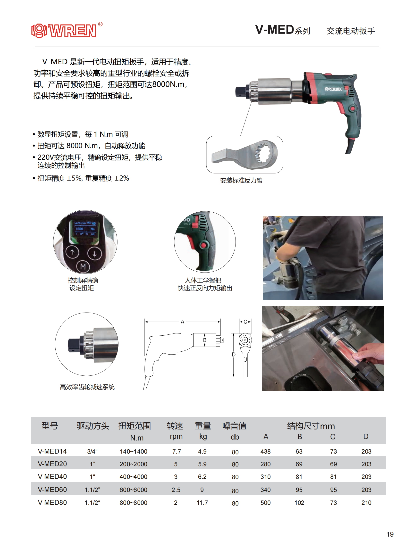 數(shù)顯扭矩設(shè)置,每 1 N.m 可調(diào) 扭矩可達(dá) 8000 N.m,自動釋放功能 220V交流電壓,精確設(shè)定扭矩,提供平穩(wěn) 連續(xù)的控制輸出 扭矩精度 ±5%, 重復(fù)精度 ±2%